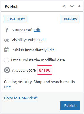 Save your product by pressing publish in the box on the top right of the page
