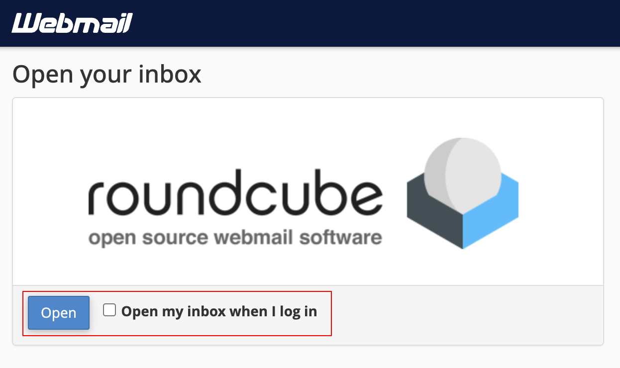 - Once logged in, press the "Open" button to access your email inbox. To make getting to the inbox faster in the future, press the "Open my inbox when I log in" checkbox.